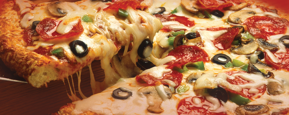 Our Original Tomato Sauce, Mozzarella, Pepperoni, Sausage, Fresh Mushrooms, Green Peppers, White Onions, Meatballs, Golden Honey Ham, Black Olives & Tomatoes